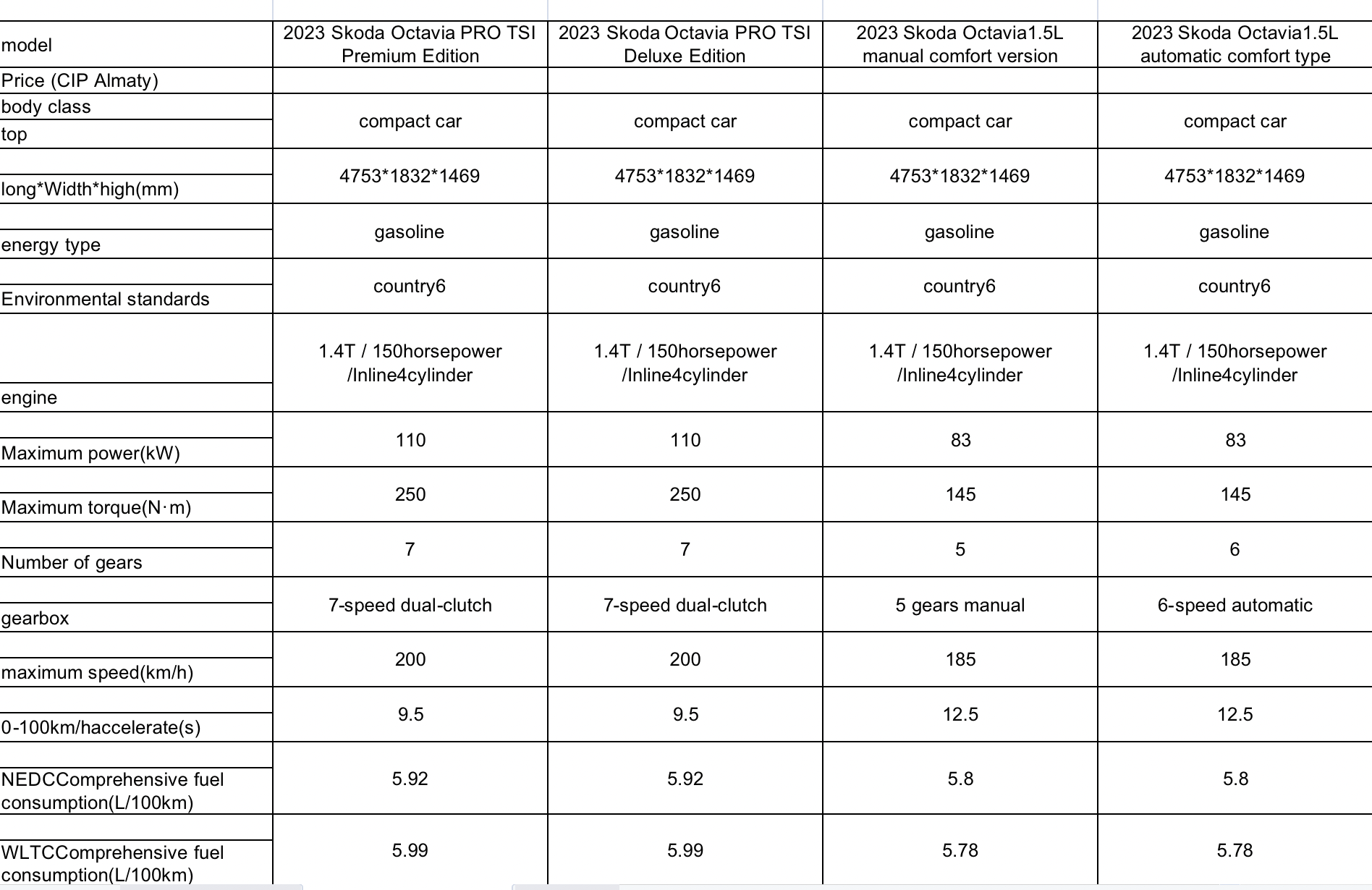 model numarası.: Skoda Octavia